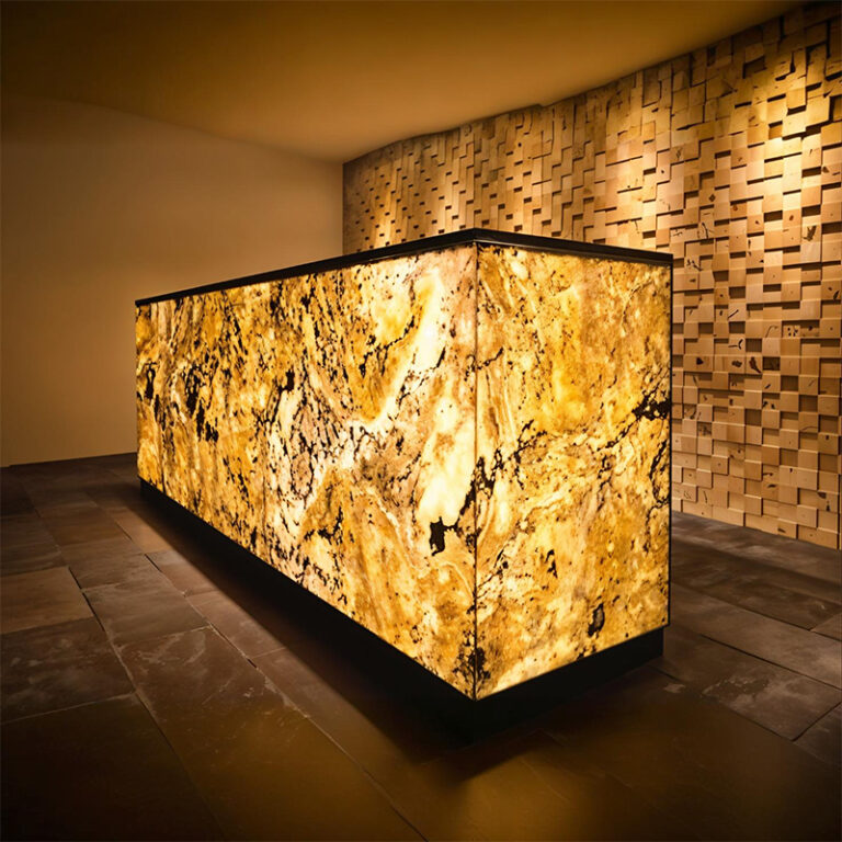 Feuilles rétroéclairables laissant passer la lumière. Parfait pour crédences lumineuses, bars, niches, meubles TV ou ambiances décoratives uniques.